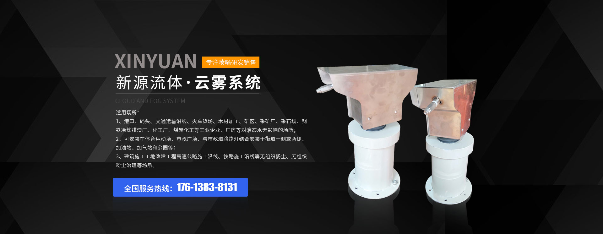 河南新源流體噴霧技術(shù)有限公司是一家從事工業(yè)噴嘴、噴頭、噴霧噴淋系統(tǒng)、云霧系統(tǒng),微米級干霧抑塵系統(tǒng),脫硫系統(tǒng)、環(huán)保工程的研發(fā)、生產(chǎn)、銷售及服務(wù)于一體的技術(shù)型企業(yè),產(chǎn)品規(guī)格型號多達幾千種,廣泛應(yīng)用于環(huán)保、抑塵、加濕、清洗、冷卻、潤滑、脫硫脫硝、抑菌消毒、噴涂涂層、農(nóng)林牧業(yè)等領(lǐng)域;公司憑借雄厚的研發(fā)、創(chuàng)新能力,標準系統(tǒng)的生產(chǎn)流程,完善的品質(zhì)管理系統(tǒng)和日益完善的銷售網(wǎng)絡(luò)及優(yōu)質(zhì)的售后服務(wù)成為行業(yè)的后起之秀。河